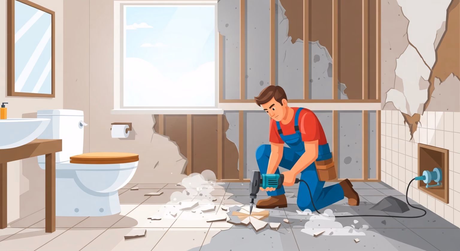 Ripping out bathroom tile or kitchen flooring? We chip, pry, and scrape off tile from floors, backsplashes, and walls — leaving behind a clean, smooth surface for your next finish.